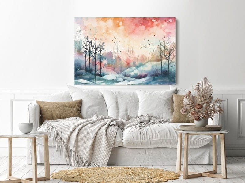 هوم جاليري الرسم بالألوان المائية المناظر الطبيعية الثلجية مع ثلجي تابلوه كانفاس مطبوع