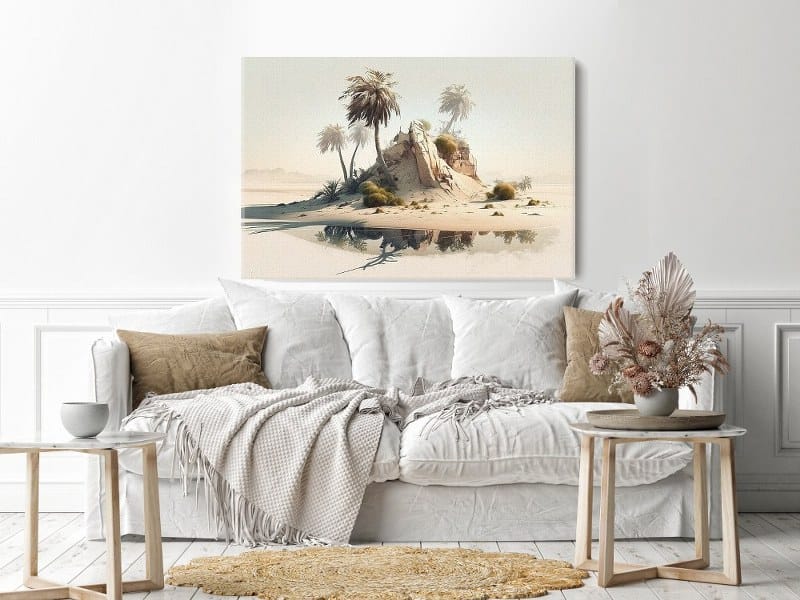 مشهد صحراوي مع أشجار النخيل جزيرة الصحراء لوحة جدارية قماشية مطبوعة
