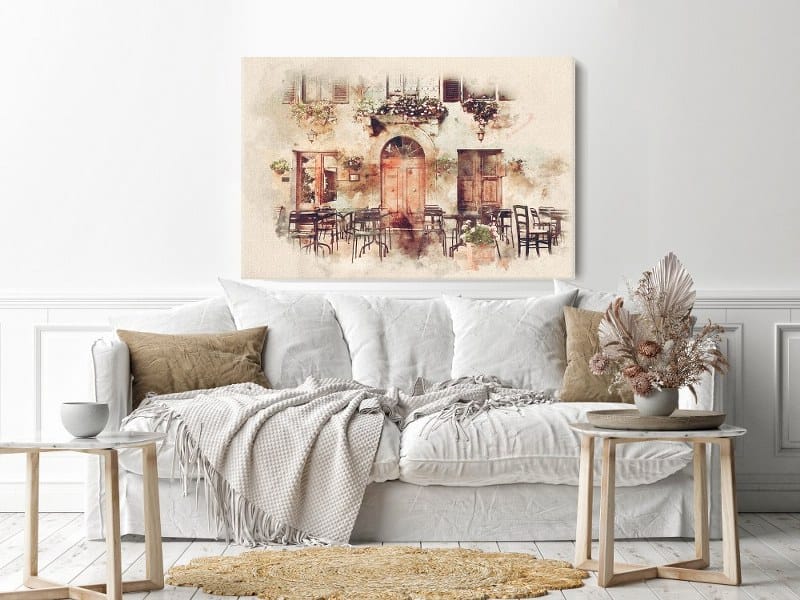 لوحة مائية ريترو رومانسي مطعم إيطاليا مطبوعة على قماش الكتانى