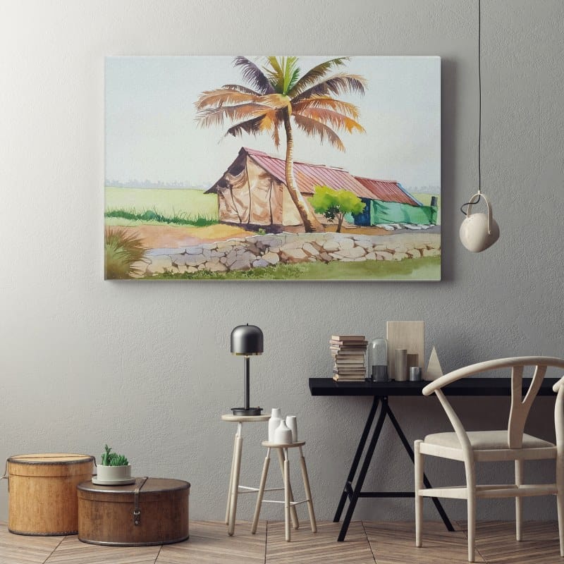 لوحة فنية مطبوعة على قماش تصور الأهرامات وأشجار النخيل مع اكتمال القمر