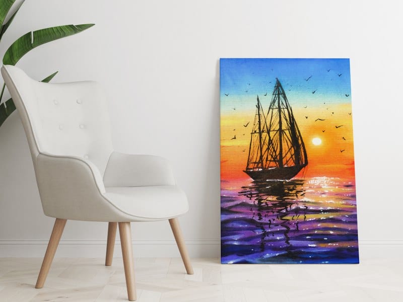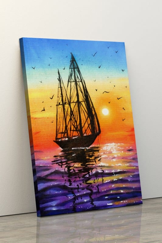 لوحة فنية جدارية من القماش ، صورة مجردة مؤطرة للقارب الشراعي