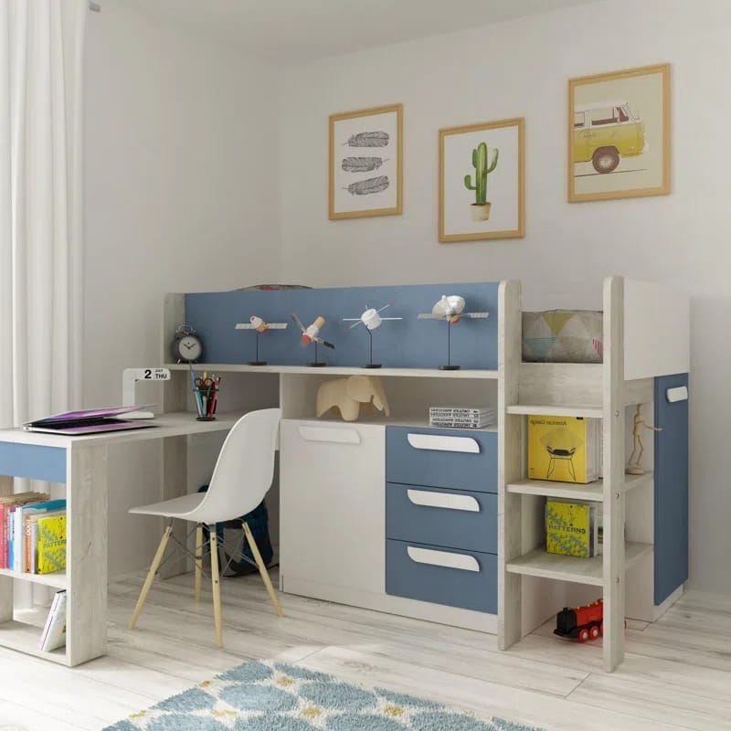 سرير مزدوج متوسط الارتفاع مع مكتبة