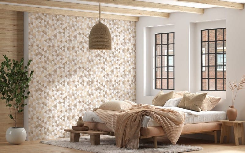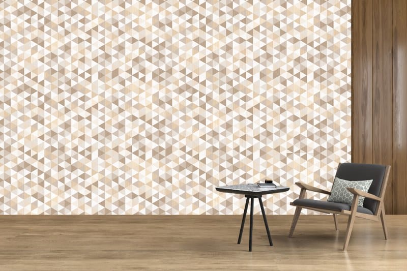 نسيج سلس من البلاط المثلث الصغير الموجود في ورق الحائط القماشي المتساوي يغطي مساحة تصل إلى 4.2 م × 3 م باستخدام أداة لاصقة وتنعيم