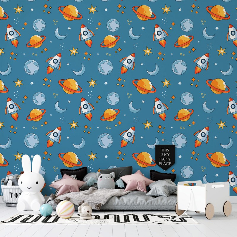 ورق حائط قماشي مستوحى من الفضاء للأطفال يغطي مساحة تصل إلى 4.2 متر × 3 متر باستخدام أداة لاصقة وأداة تنعيم