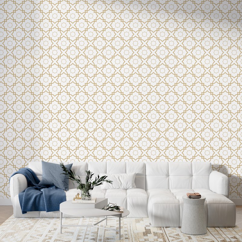 ورق حائط من القماش الفاخر باللون الذهبي التجريدي ذو الخطوط الهندسية يغطي مساحة تصل إلى 4.2 متر × 3 متر باستخدام أداة لاصقة وتنعيم