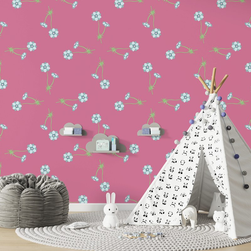 ورق حائط من القماش بنمط أوراق لطيفة مع زهور رقيقة يغطي مساحة تصل إلى 4.2 متر × 3 متر باستخدام أداة لاصقة وأداة تنعيم