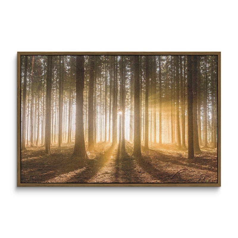 لوحة جدارية من قماش لغابة تشرق عليها الشمس من خلال الغيوم