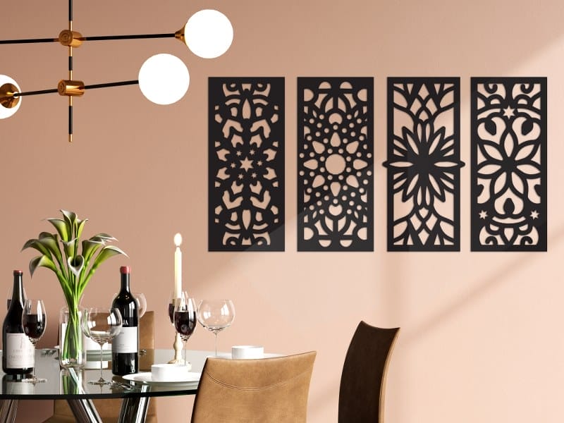 لوحة جدارية حديثة من MDF مقطوع بالليزر قطعة زخرفية مثالية لتكمل مطبخك ، غرفة الطعام ، المقهى ، غرفة المعيشة ، … سهل التطبيق على أي جدران وأبواب وخزائن بشريط لاصق على الوجهين. يشتمل المنتج على شريط مزدوج الجوانب عالي الجودة، يرجى الانتباه إلى القياس المكتوب. ربما تم تكبير الصور لإبراز المنتج”