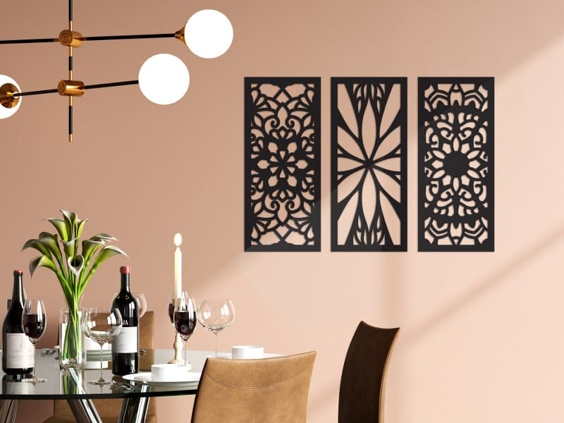 لوحة جدارية حديثة من MDF مقطوع بالليزر قطعة زخرفية مثالية لتكمل مطبخك ، غرفة الطعام ، المقهى ، غرفة المعيشة ، … سهل التطبيق على أي جدران وأبواب وخزائن بشريط لاصق على الوجهين. يشتمل المنتج على شريط مزدوج الجوانب عالي الجودة، يرجى الانتباه إلى القياس المكتوب. ربما تم تكبير الصور لإبراز المنتج”