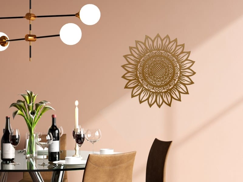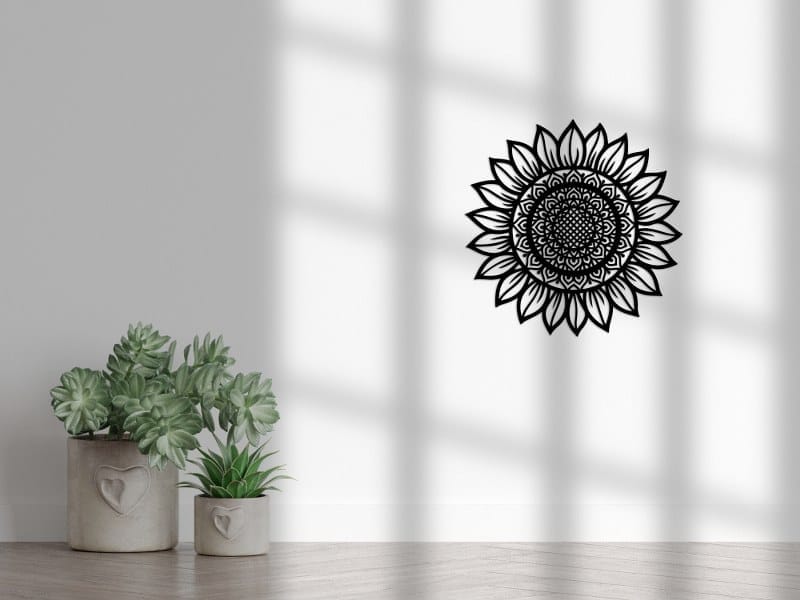 لوحة جدارية خشبية بتصميم دوار الشمس الهندسي ٨٠×٨٠