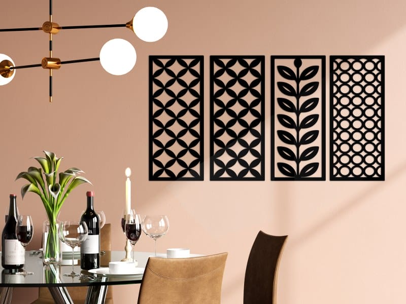 لوحة جدارية حديثة من MDF مقطوع بالليزر قطعة زخرفية مثالية لتكمل مطبخك ، غرفة الطعام ، المقهى ، غرفة المعيشة ، … سهل التطبيق على أي جدران وأبواب وخزائن بشريط لاصق على الوجهين. يشتمل المنتج على شريط مزدوج الجوانب عالي الجودة، يرجى الانتباه إلى القياس المكتوب. ربما تم تكبير الصور لإبراز المنتج”