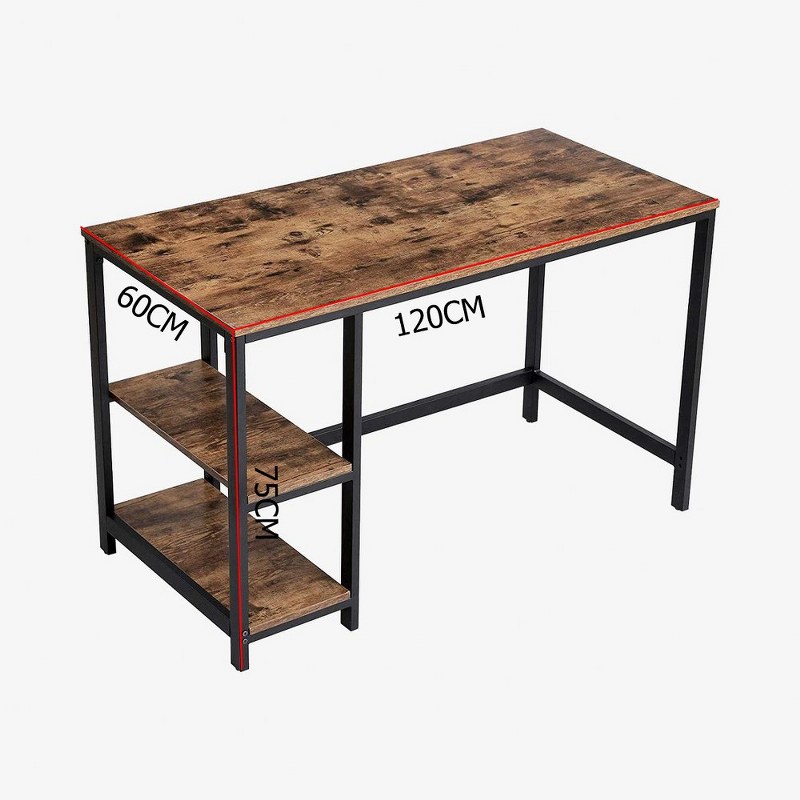 تفاصيل المنتج أكمل ديكور منزلك على الطراز الصناعي مع تضمين هذا المكتب الذي يتميز بإطار قوي مع رفين مفتوحين على جانبه الأيسر وسطح طاولة ناعم. إنه مصنوع من مزيج من MDF باللون البني الريفي مع إطار معدني أسود وواقيات أرضية لتعزيز المتانة والثبات. سيكون هذا المكتب إضافة رائعة لمكتبك أو غرفة الدراسة.