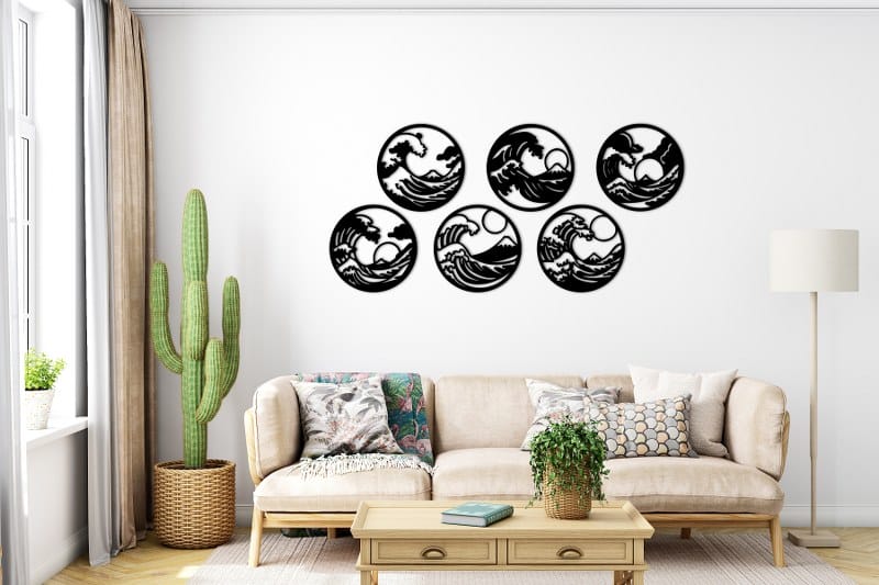 مجموعة من ٦ لوحات جدارية خشبية بميداليات أمواج كاناغاوا ١٦٥×٧٥