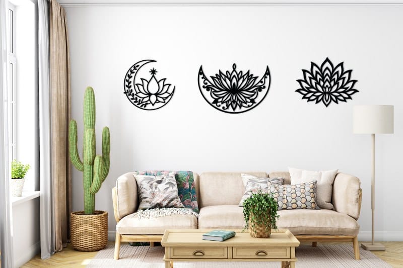 لوحة جدارية خشبية ثلاثية اللوتس البسيطة ١٣٠×٧٠