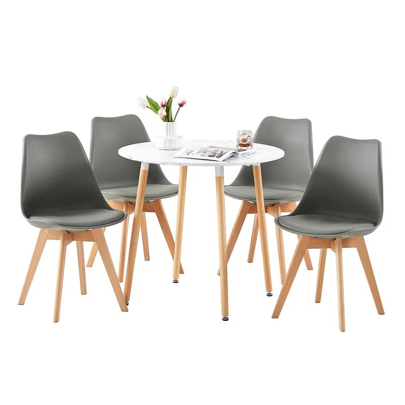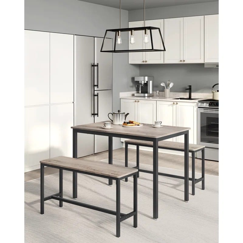 مجموعة طاولة طعام خشبية لـ 6 أشخاص طاولة بتصميم خشب البلوط مع 4 كراسي مخملية ومقعد واحد