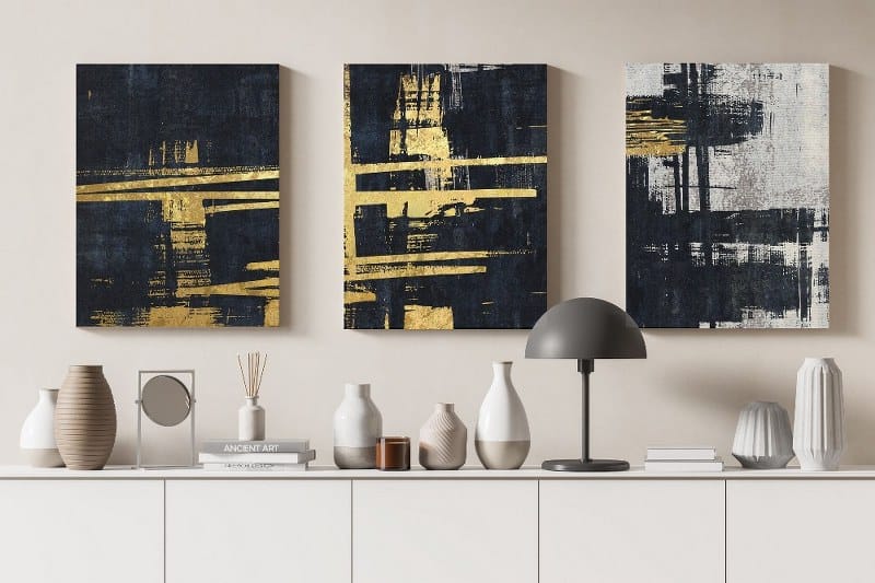 Canvas Wall Art, Abstract Framed Portrait of A set of three abstract background of minimalism. With a geometric pattern of art