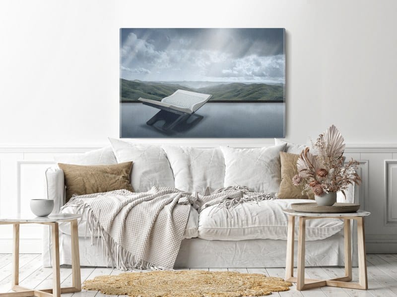 Painting canvas sailboat in river with cloudy sky Printed wall art
