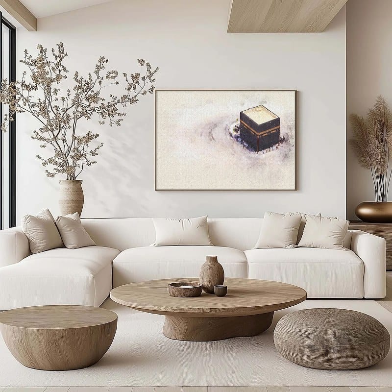 Abstract framed portrait of drawing of the kaaba prayer in mecca