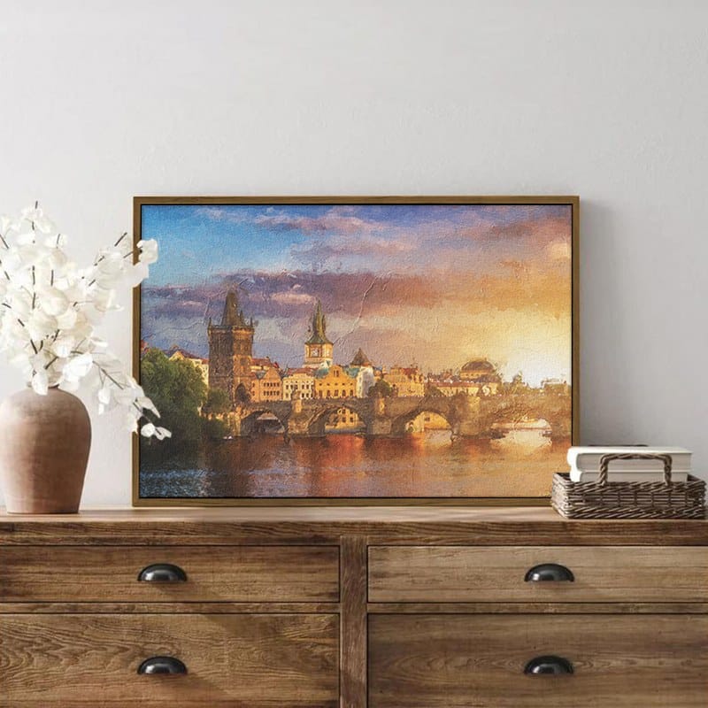 Landscape with Charles Bridge reflected in river Canvas Wall Art