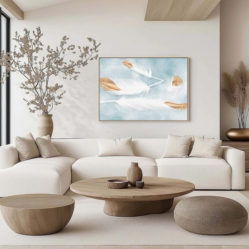 Abstract Framed Portrait of White and gold feathers Wall Art