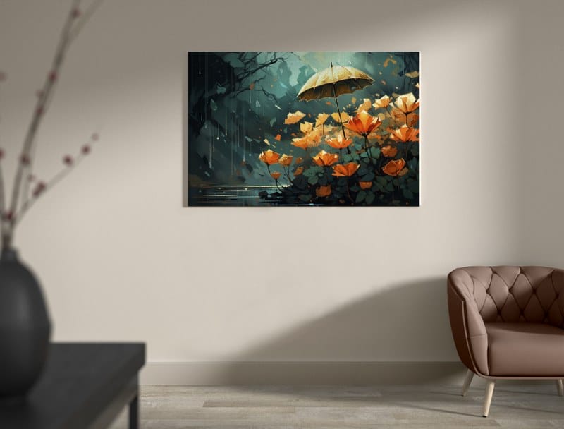 Beautiful background canvas illustration bus stop with sad cat Printed wall art