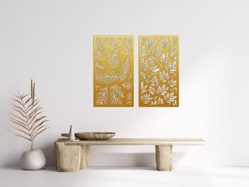 Palm and Maple Leaf Wood Wall Art Duo 100×80