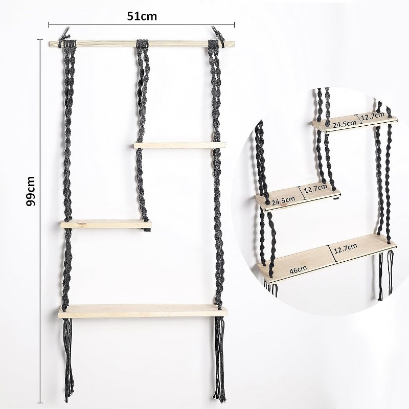 3 Tier Rope Floating Shelf Macrame Wall Hanging Handmade