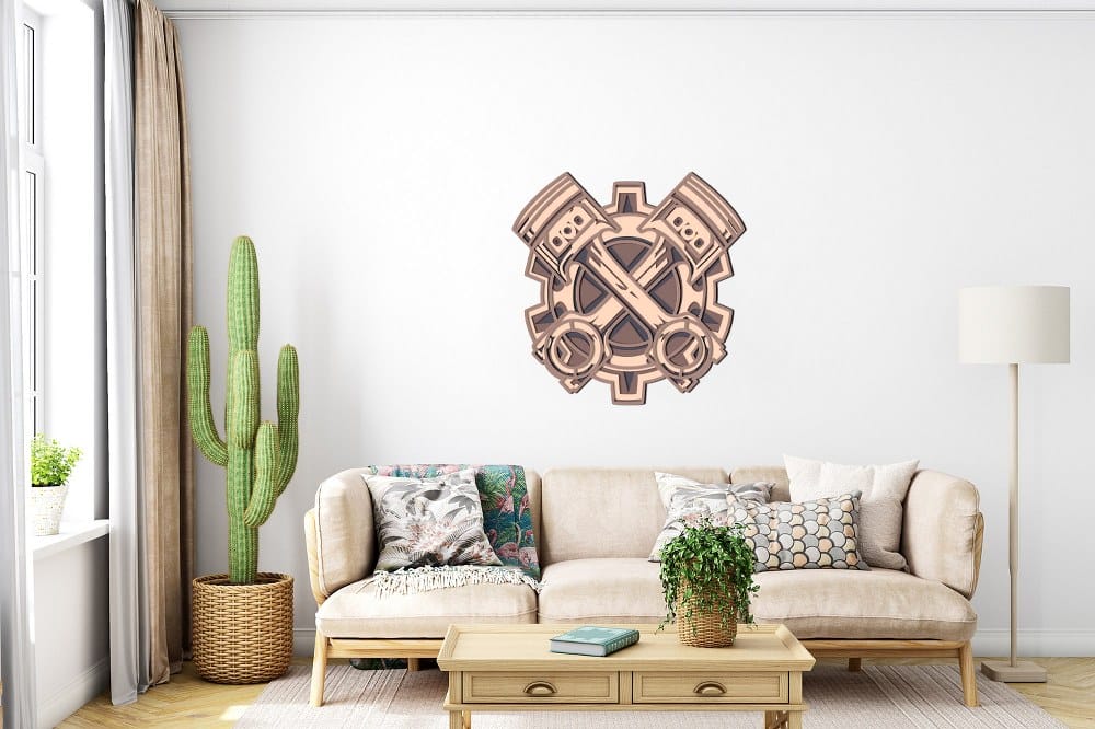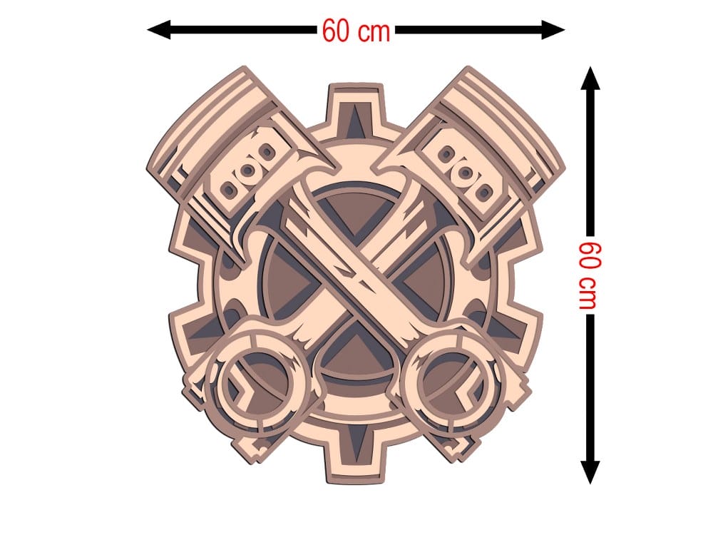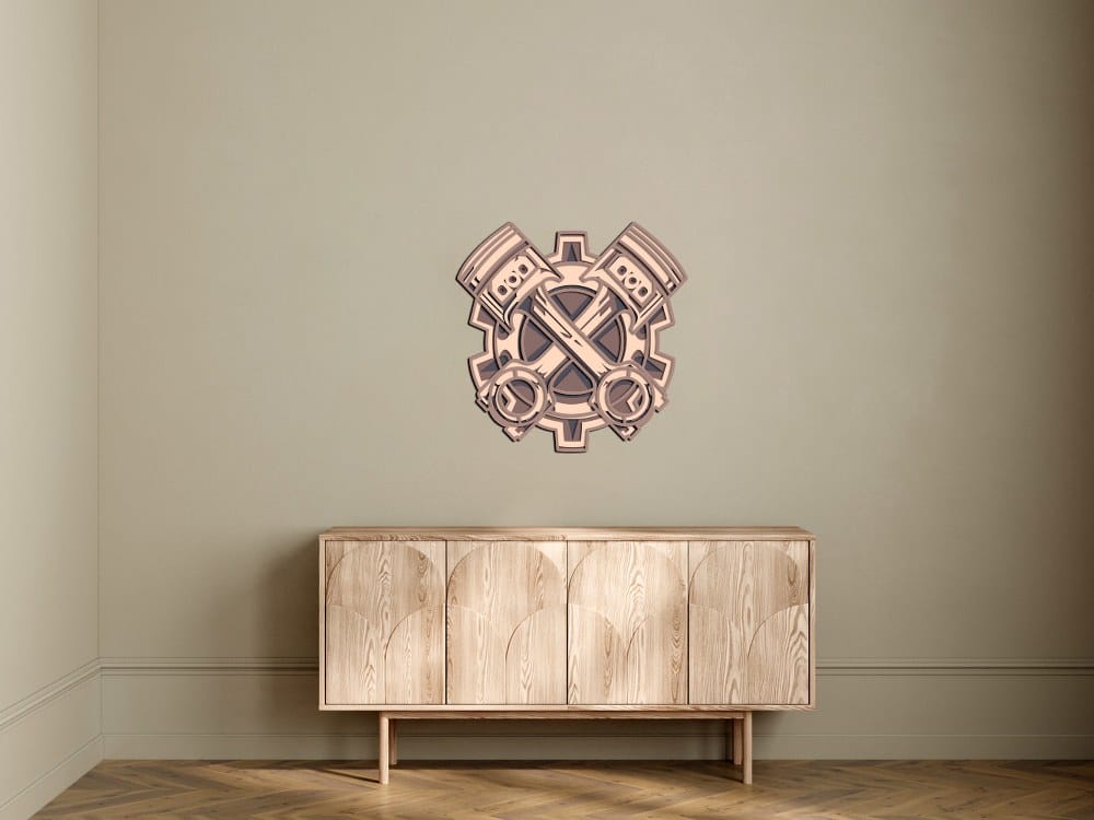 3D Wooden Engine Pistons Wall Art 60×60