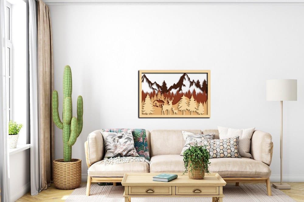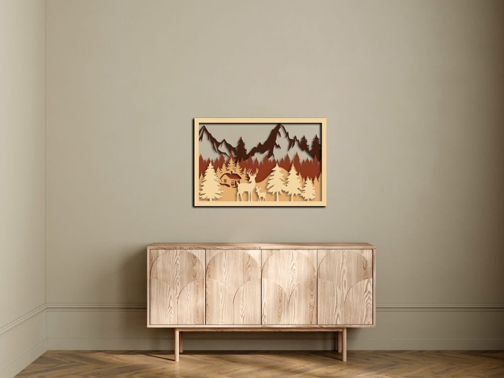 Be the first to review “3D Wooden Mountain Forest Deer Landscape Wall Art 60×40”
