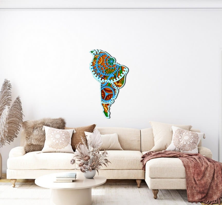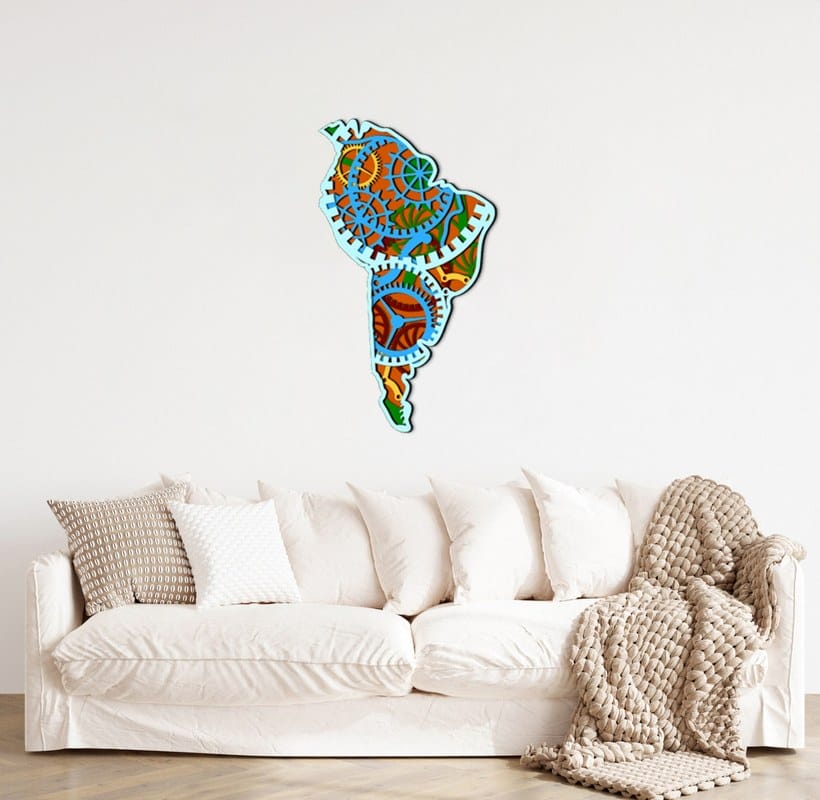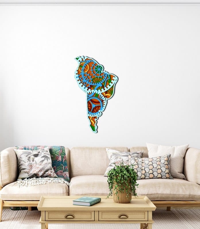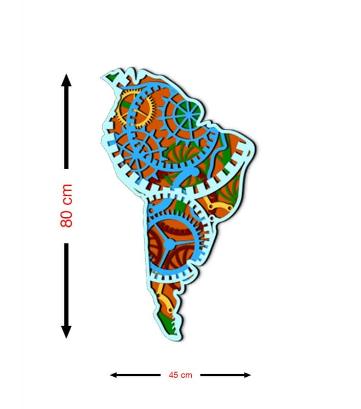 3D Wooden South America Gear Map 80×45