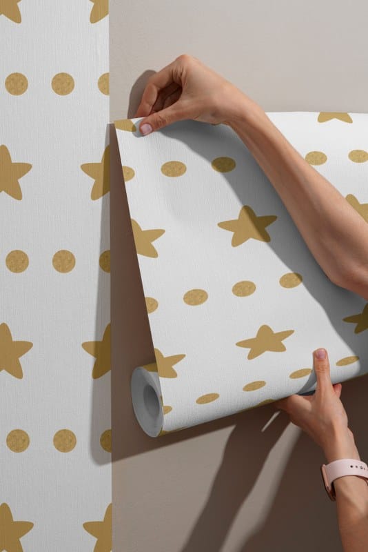 Be the first to review “Abstract Golden Stars Pattern Fabric Wallpaper Covers an area ​​up to 4.2mX3m with adhesive  and smoothing tool”