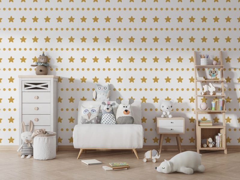 Abstract Golden Stars Pattern Fabric Wallpaper Covers an area ​​up to 4.2mX3m with adhesive  and smoothing tool