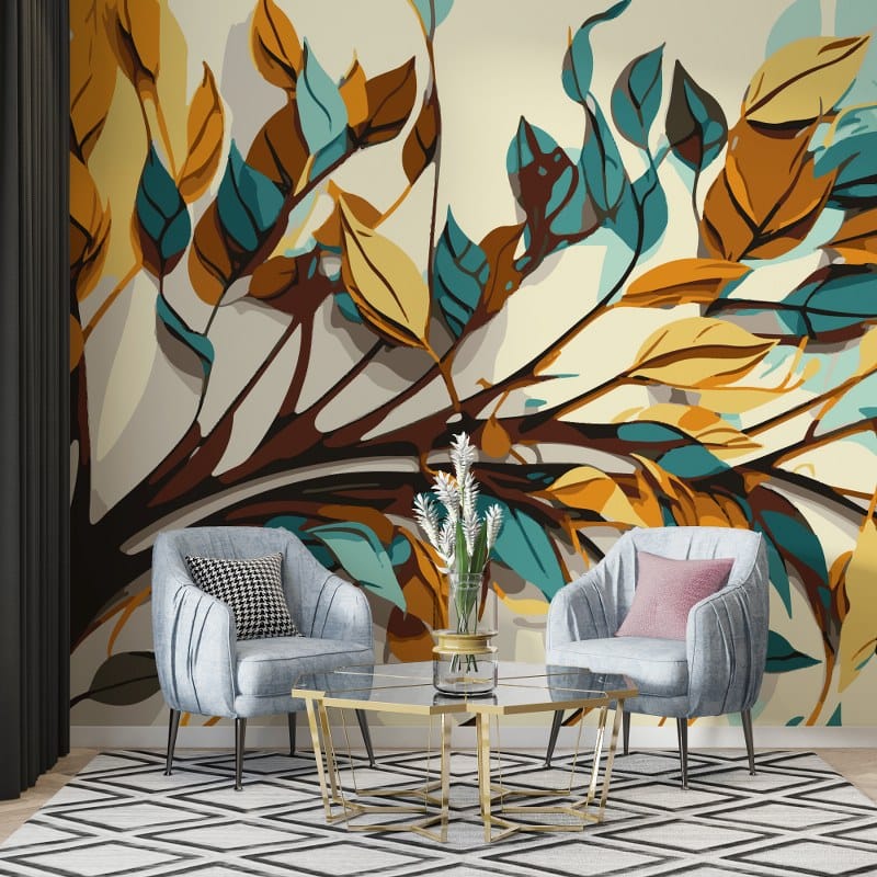 Be the first to review “Autumn leaves Fabric Wallpaper Covers an area ​​up to 4.2mX3m with adhesive  and smoothing tool”