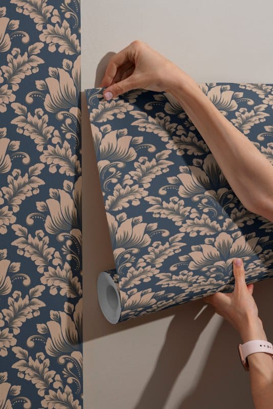 Seamless background in the style of Damascus Fabric Wallpaper Covers an area ​​up to 4.2mX3m with adhesive  and smoothing tool
