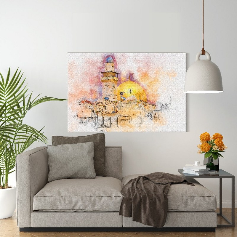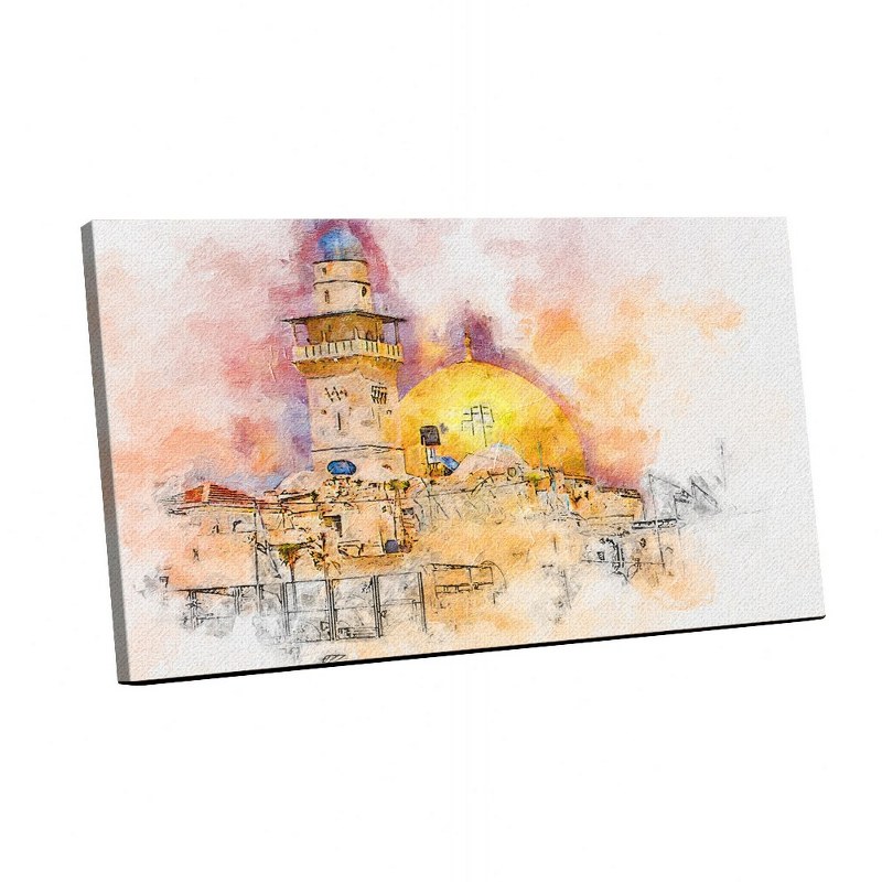 Canvas Wall Art, Abstract Framed Portrait of Al-Aqsa Mosque Dome of the Rock