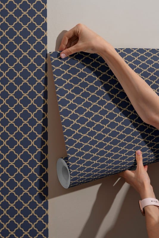 Fretwork Geometric Midnight Blue Fabric Wallpaper Covers an area ​​up to 4.2mX3m with adhesive  and smoothing tool