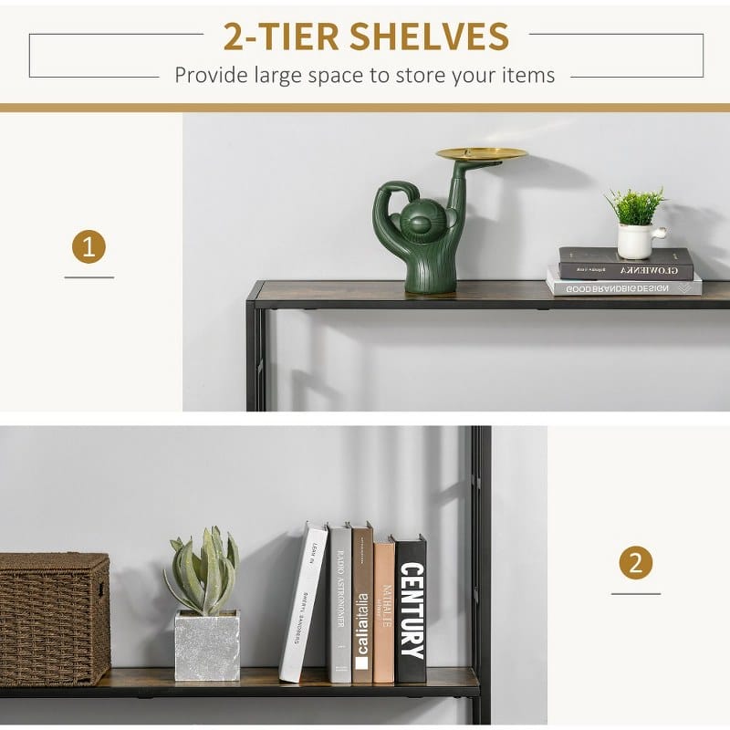 Industrial Console Table with Storage Shelf – Brown 75X106X25