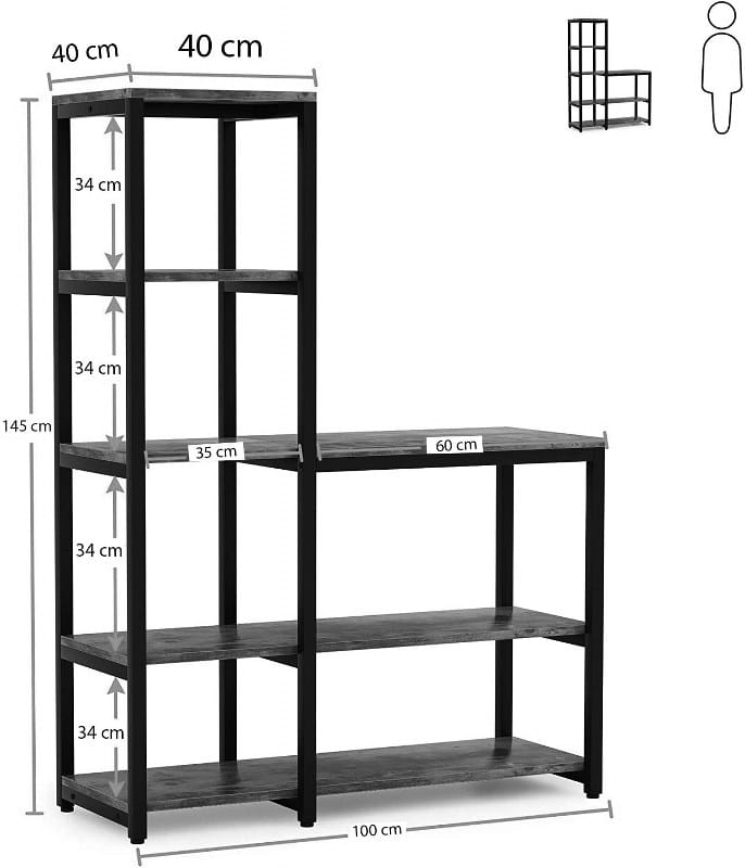 5-Tier L Shaped Bookshelves: This stepped bookshelf features five tiered structure that provides plenty of storage space for displaying books, vases, crafts, photo frames, potted plants and other knickknacks.