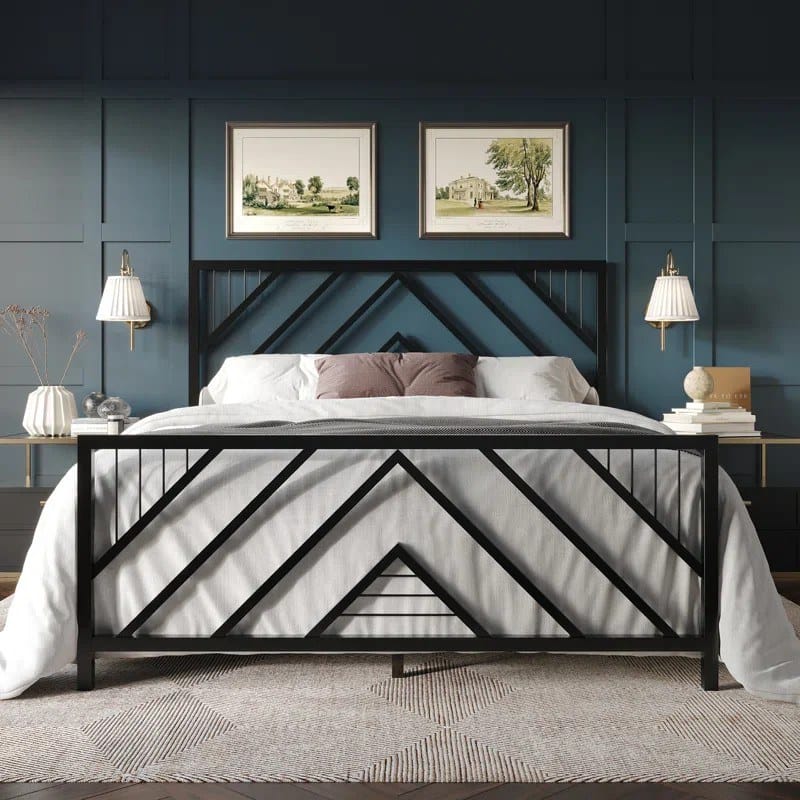 | Refresh your bedroom or spare room with this elegant metal platform bed with a headboard and footboard. Minimalist but graceful, this metal bed is defined by its clean-lined silhouette and cloud-inspired headboard, adding a touch of elegance and freshness to your home. Constructed of a solid and durable metal framework, this bed frame features multiple strong support legs that provide optimal stability for any type of latex, memory foam or spring mattress without a clumpy box spring. Thoughtful details like additional corner braces and non-slip foot caps all work together to provide you with a noise-free night’s sleep. Additionally, the platform bed frame creates valuable under-the-bed space for storing your luggage, shoes, bags, and other odds ends, keeping your bedroom organized and clutter-free. You can choose between white, matte black, antique gold and pink to match your interior style, it also comes in multiple sizes to satisfy your specific needs. With all the parts, tools, and step-by-step instructions provided, you can quickly assemble the bed frame and soon be on your way to a night of satisfying sleep! |