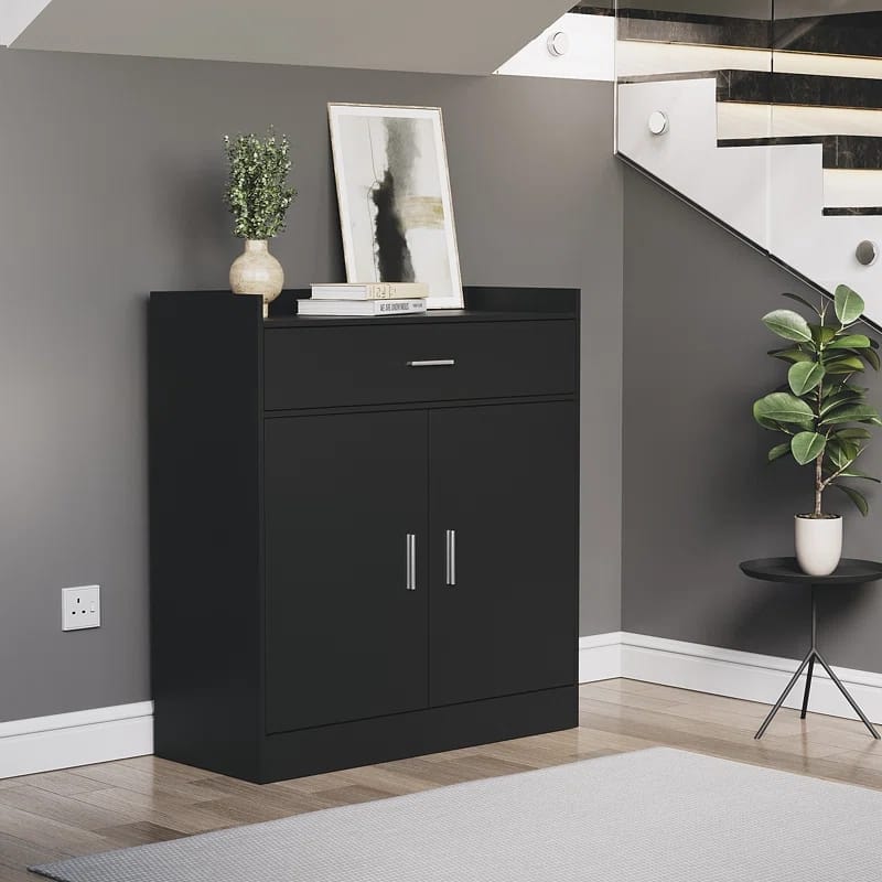 The Muskoka 2-door 1-drawer shoe cabinet is a versatile and stylish storage solution for your shoes and small belongings. Crafted from durable materials like Particleboard and MDF with a paper veneer and melamine finish, this cabinet offers both functionality and longevity. With its range of colour options, you can find the perfect match for your existing d?cor. The two-door design provides ample space to neatly organize and store your shoes, helping you maintain a clean and tidy room. Additionally, the convenient one-drawer offers a secure place for storing smaller items such as files, jewelry, keys, and more, ensuring easy accessibility when needed. The Muskoka 2-door 1-drawer shoe cabinet is an excellent addition to any home, combining practicality, durability, and aesthetic appeal.
