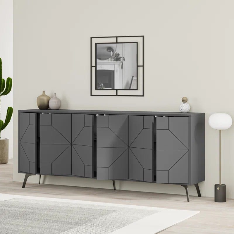 Elevate your home decor with the 183cm Wide Modern Geometric Sideboard. Featuring a striking geometric design, this sideboard brings a touch of contemporary elegance to any room. Its spacious 183 cm width provides ample storage behind its sleek, geometric-patterned doors, making it ideal for organizing your living space. Inside, you’ll find large compartments perfect for storing household essentials, decor items, and more. Made from high-quality materials, this sideboard ensures durability and longevity. Available in multiple finishes, it complements any decor effortlessly. Upgrade your home with this stylish and functional sideboard that combines modern design with practical storage.